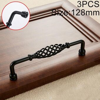 6099-128 Classic Birdcage Shape Iron Cabinet Wardrobe Drawer Door Handle, Hole Spacing: 128mm (Matte Black)