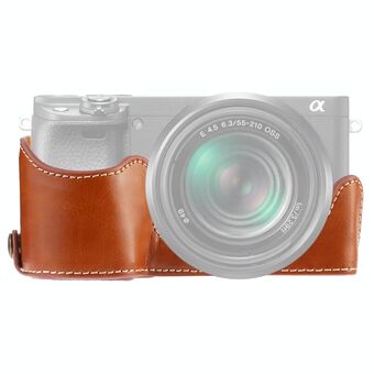 Full Body Camera PU Leather Case Bag with Strap for Sony A6400 / ILCE-A6400 (Brown)