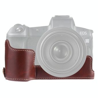 1/4 inch Thread PU Leather Camera Half Case Base for Canon EOS R (Coffee)
