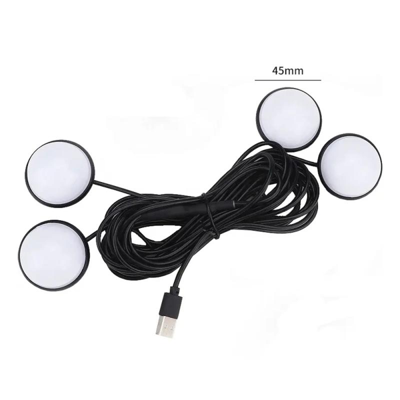 Car 4 in 1 USB RGB Foot LED Atmosphere Light (White Light)