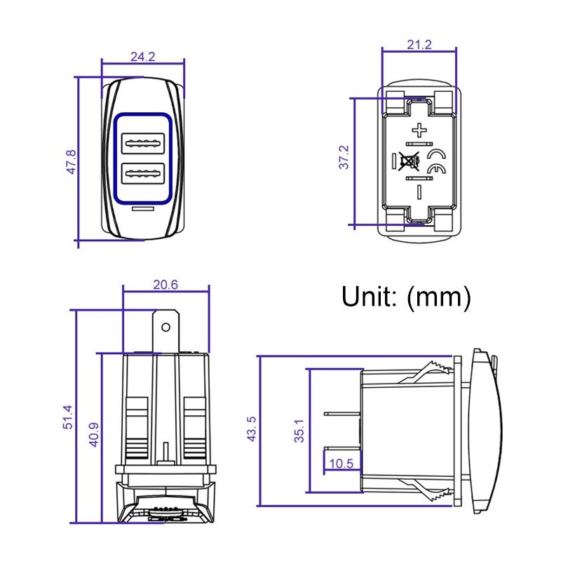 1. Dual USB positive and negative plugs, universal for cars, motorcycles and ships.