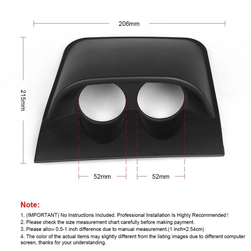 1. Specially designed for holding two automobile gauges (with 52mm diameter), like 52mm water temperature meter, 52mm oil pressure meter, 52mm tachometer and so on.