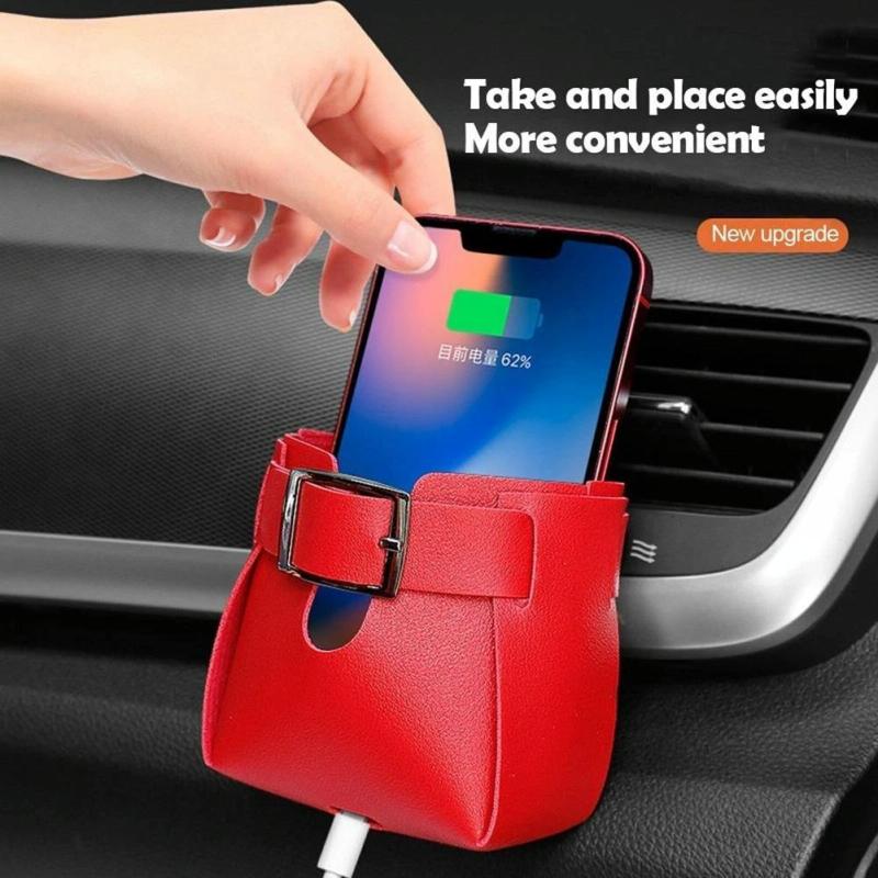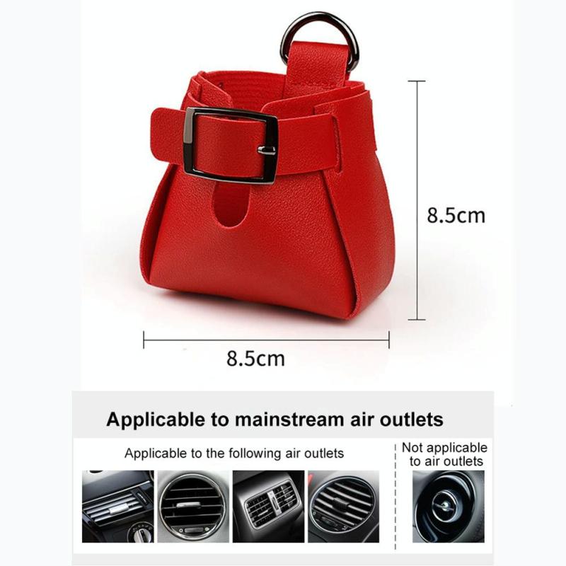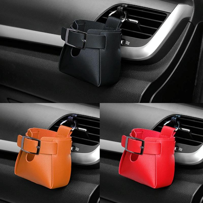 Car Air Vent PU Leather Storage Hanging Bag(Brown)