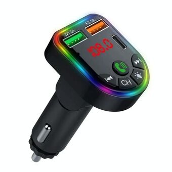 PDF4 PD 25W Fast Car Charger with Hands-Free Calls FM Transmitter 7-Color Led Lights MP3 Player