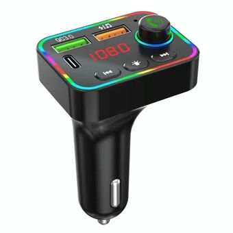 PDF3 7-Color Lights Hands-Free Bluetooth Calling MP3 Wireless Player PD/QC3.0 Fast Car Charger