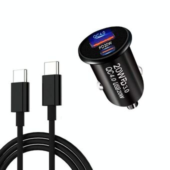 P10 Mini QC4.0 USB / PD20W Car Charger with Type-C to Type-C Fast Charging Data Cable(Black)