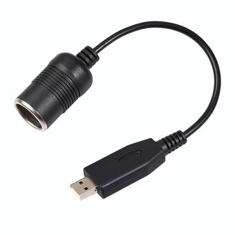 Car Converter USB Port to Car Cigarette Lighter Socket Female 5V to 12V Boost Power Adapter Cable (Black)