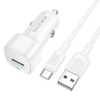 BOROFONE BZ34 Cloud QC3.0 USB Car Charger Set, with 1m USB to Type-C Cable(White) (Borofone)