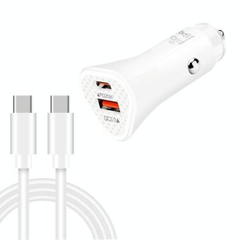 TE-P23 38W PD USB-C / Type-C + QC3. 0 USB Triangle Car Charger + USB-C / Type-C to USB-C / Type-C Data Cable, Length: 1m(White)