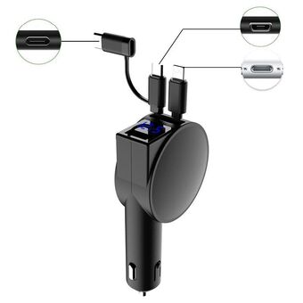3 In 1 40W Fast Charging Dual Cable Retractable Car Charger(Black)
