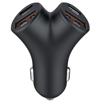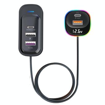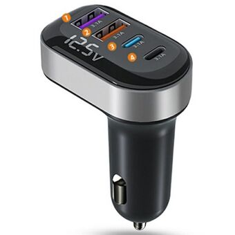 K33 With Voltage Display USB-A and Type-C 4-Port Car Charger Fast Charging Adapter