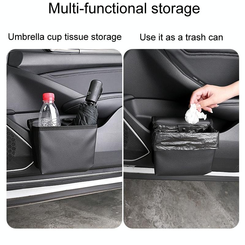 Car Folding Trash Can Multifunctional Seatback Hanging Storage Box(Black)