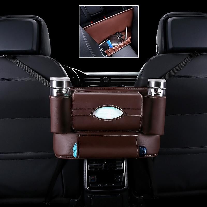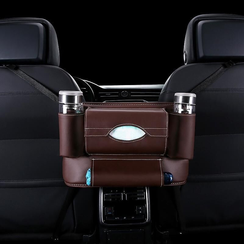 Car Front Seat Hanging Bag Paper Towel / Water Cup Storage Bag(Coffee)
