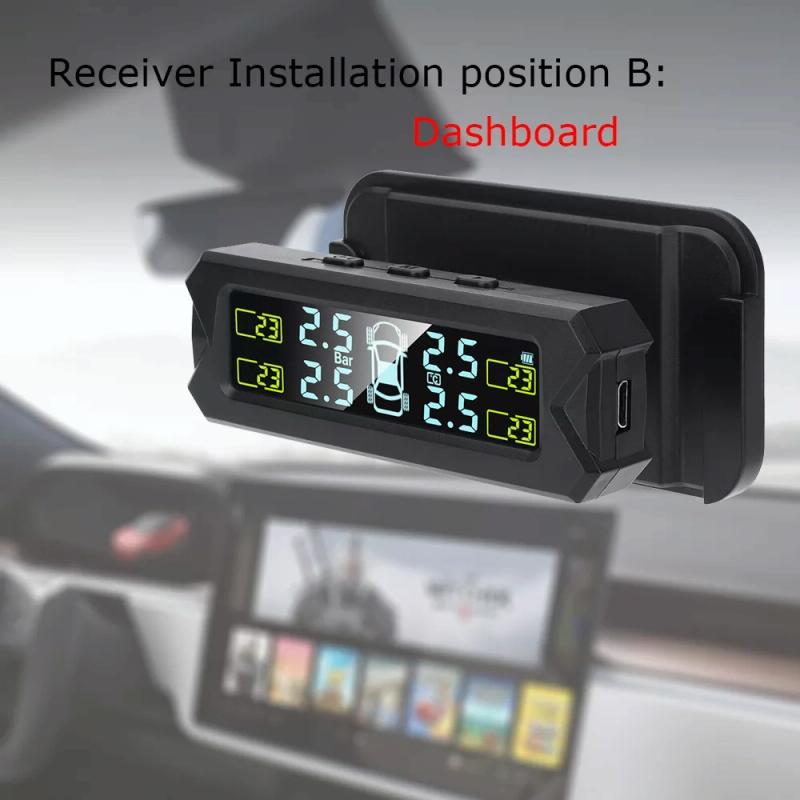 5. Built in with solar panels and USB ports, the receiver of the wireless TMPS can be charged via USB or daylight, ensuring the continuous operation of the tire pressure monitoring system.