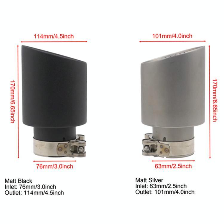 Car Inclined Stainless Steel Muffler Exhaust Pipe, Size: 76x114mm Silver