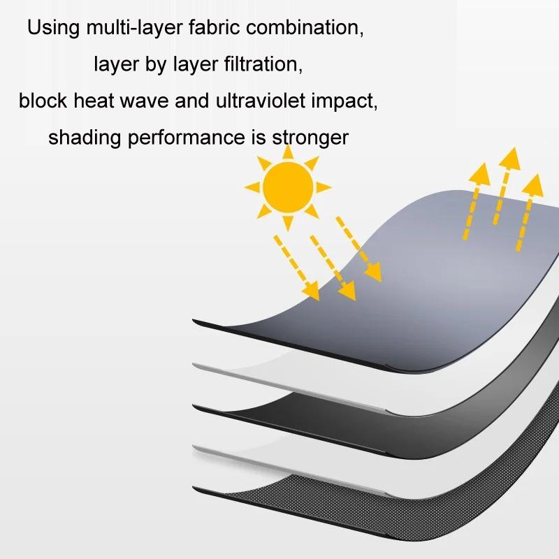 7. Fully blackout fabric + semi-permeable mesh double-layer design, environmentally friendly fabric with long-lasting sun protection and no odor for peace of mind