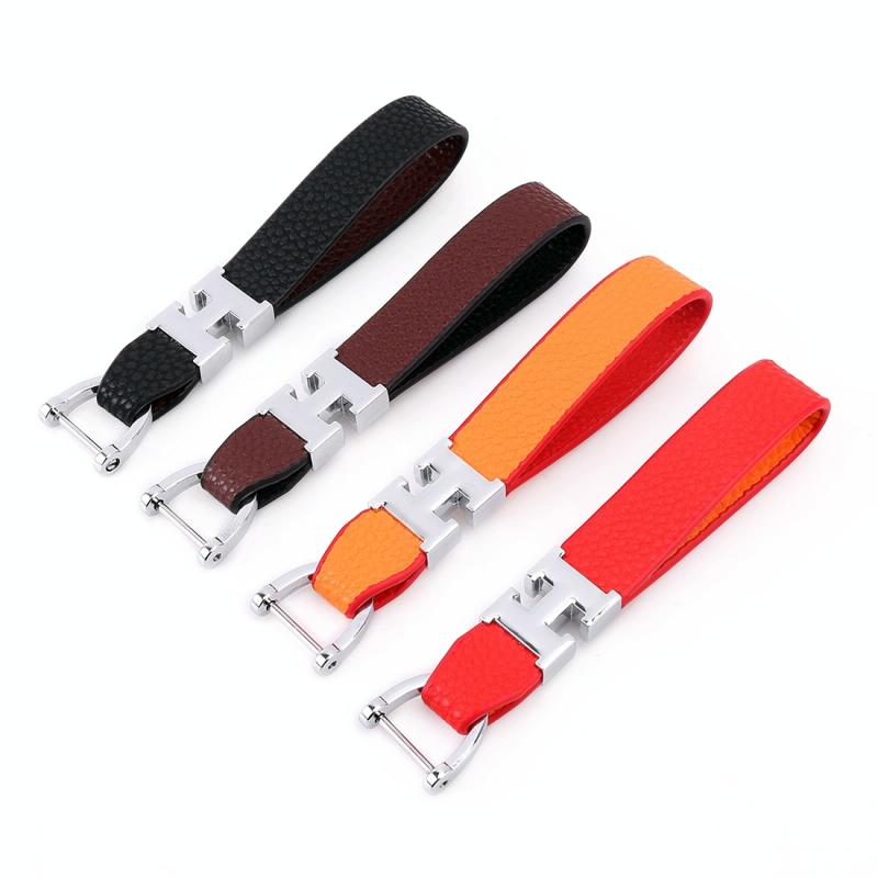 Car Metal Leather Key Ring Keychain, Random Color Delivery