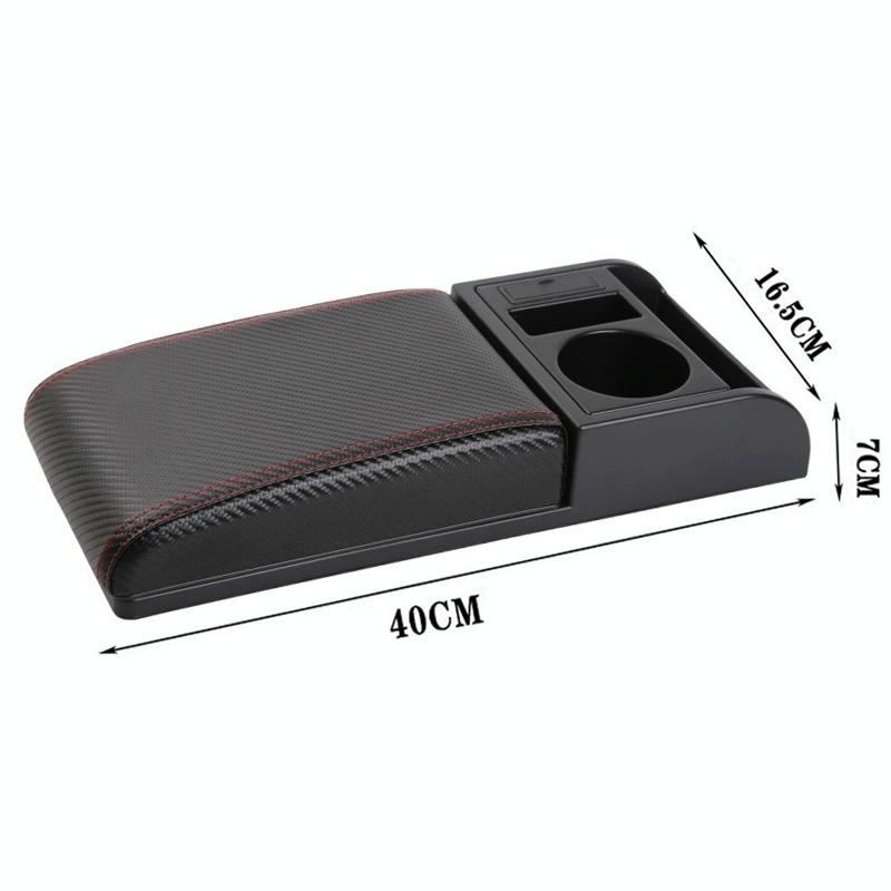 Car Multi-functional Dual USB Armrest Box Booster Pad, Carbon Fiber Leather Straight Type (Black Red)