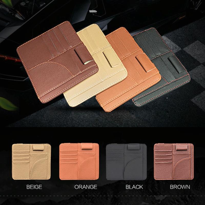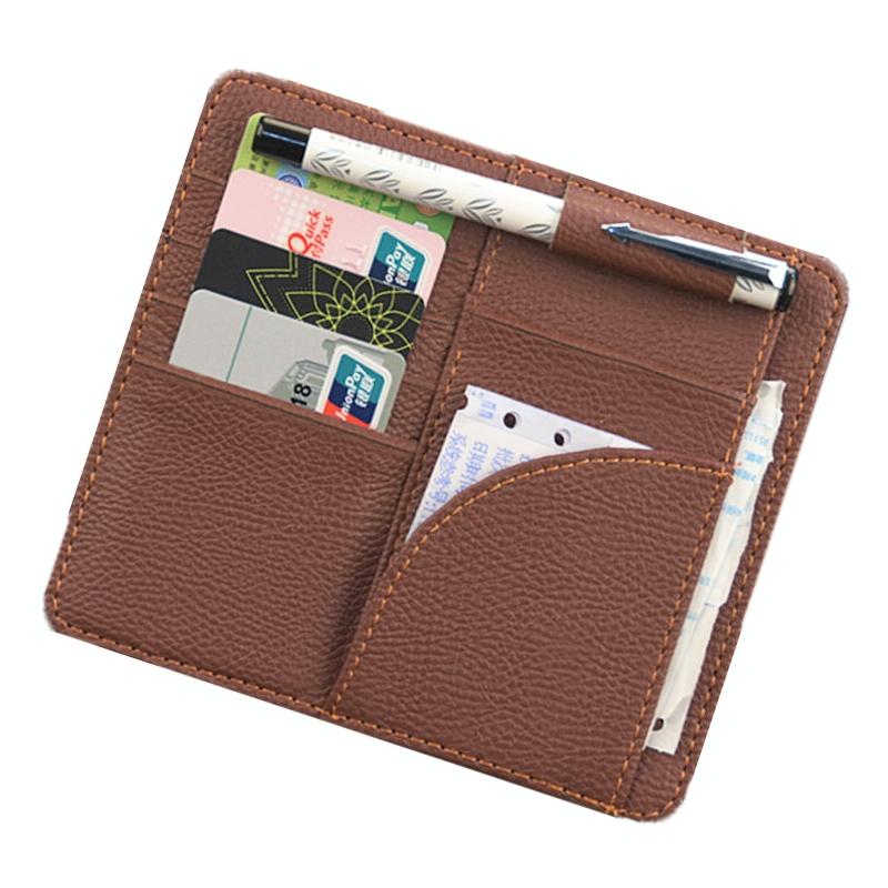 Car Multifunctional Sun Visor Card Holder Bill Storage Card Bag (Brown)