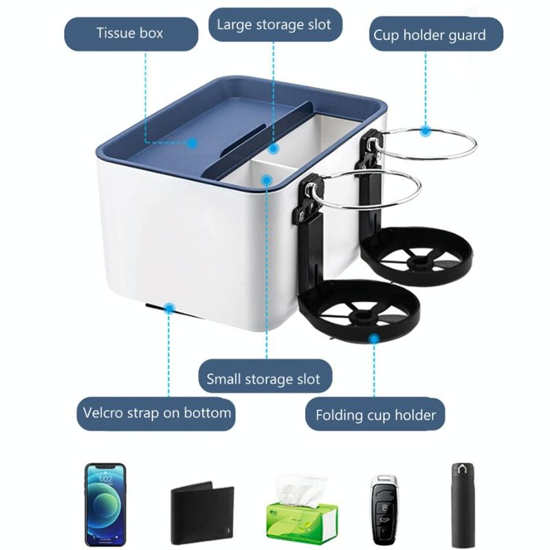 2. The storage box has 2 independent spaces, the large space can store large items such as tissues and snacks, and the small space can store your glasses, mobile phones, wallets and other small items.