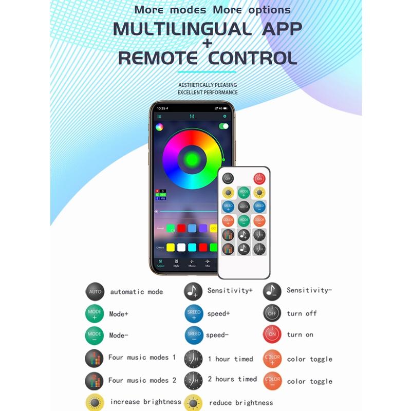 13. Multi-color LED, APP control and remote control, you can easily switch it between colors and modes, you can change the brightness, speed, etc.