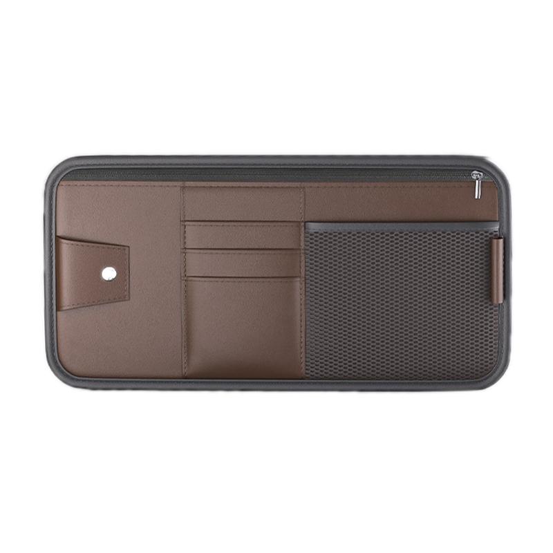 Car Sun Visor Card Glasses Holder Zipper Storage Bag(Brown)