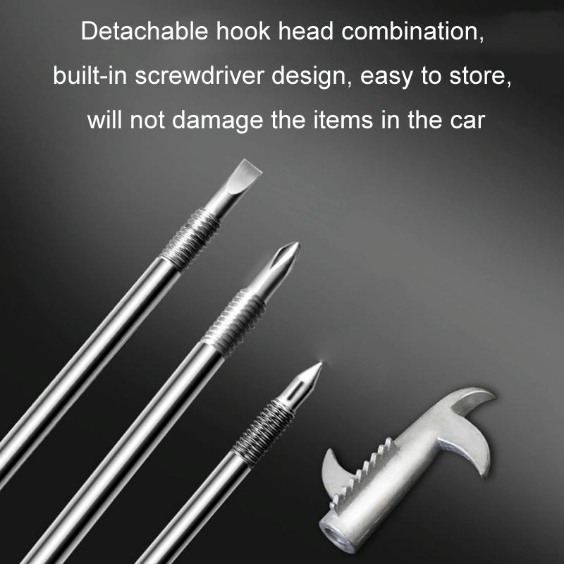 4. Detachable hook head combination and built-in screwdriver design, easy to store and will not damage the items in the car