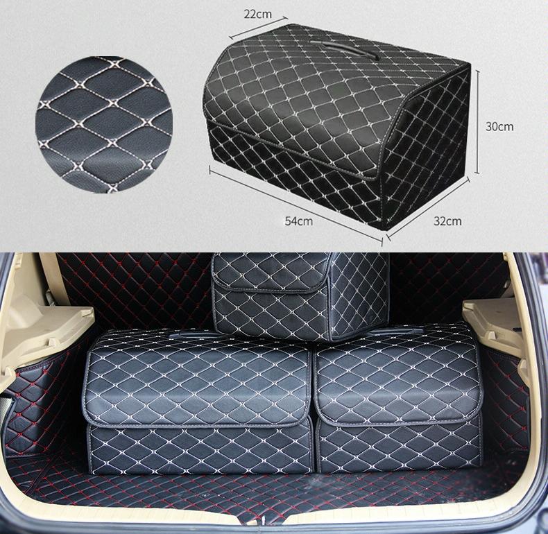 Car Trunk Foldable Storage Box, Rhombic Grid Large Size: 54 x 32 x 30cm (Beige)