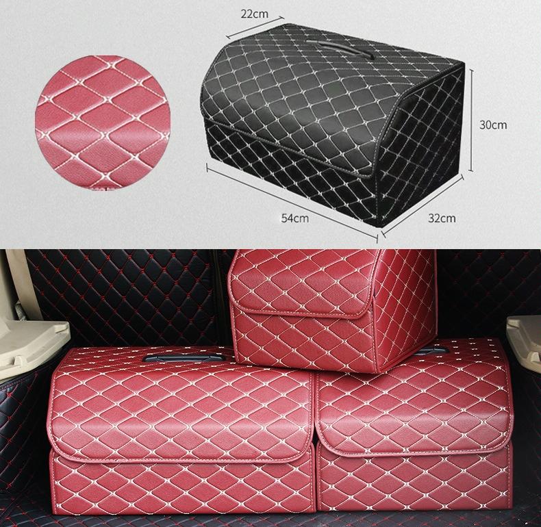 Car Trunk Foldable Storage Box, Rhombic Grid Large Size: 54 x 32 x 30cm (Wine Red)