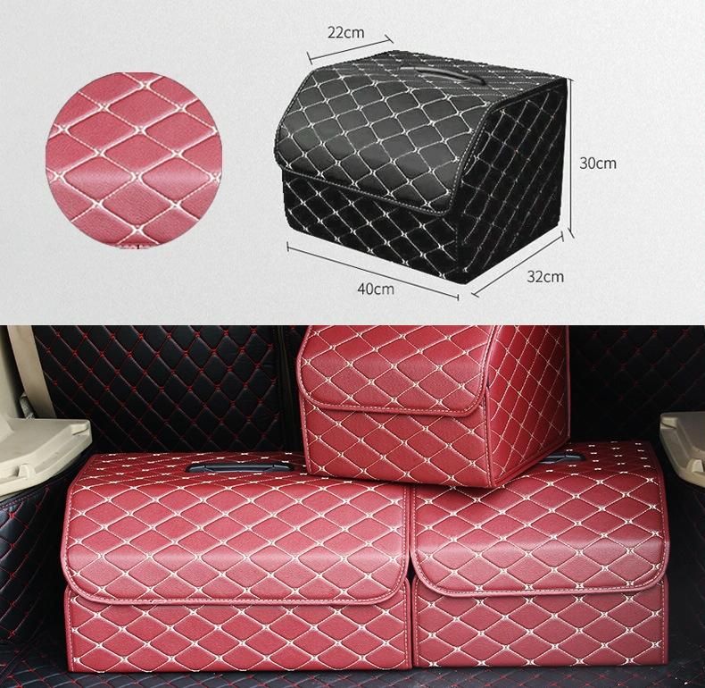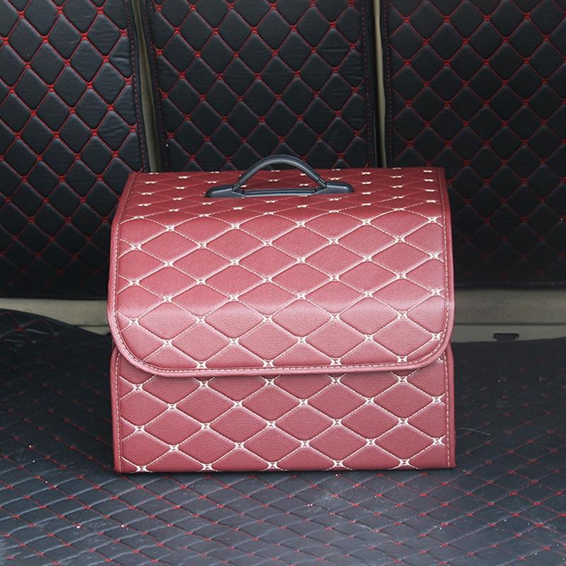 Car Trunk Foldable Storage Box, Rhombic Grid Middle Size: 40 x 32 x 30cm (Wine Red)