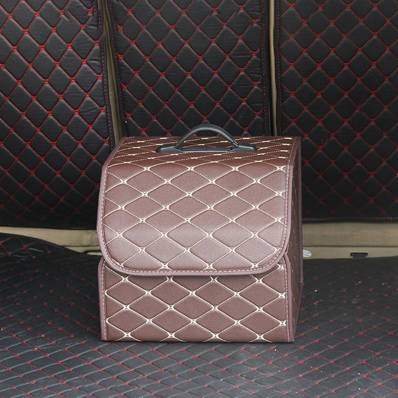 Car Trunk Foldable Storage Box, Rhombic Grid Small Size: 33 x 32 x 30cm (Coffee)