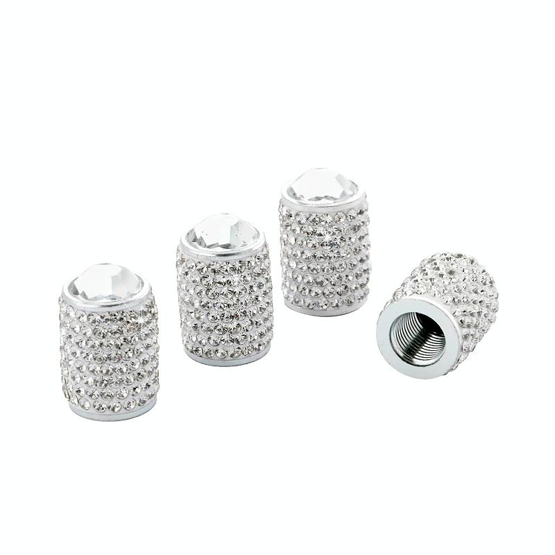 Car Tyre Aluminium Full Diamond Valve Cap With Seal(White)