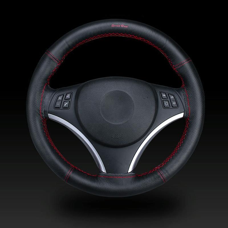Car Universal Genuine Leather Hand-stitched Steering Wheel Cover(Dark Brown)