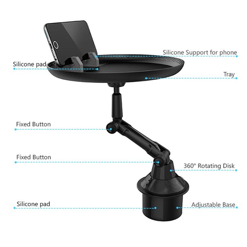 5. It will work with most vehicles. The car tray securely mount onto cup holders 2.56-3.7 inch wide without leaving behind scratches due to its rubber mounting points.