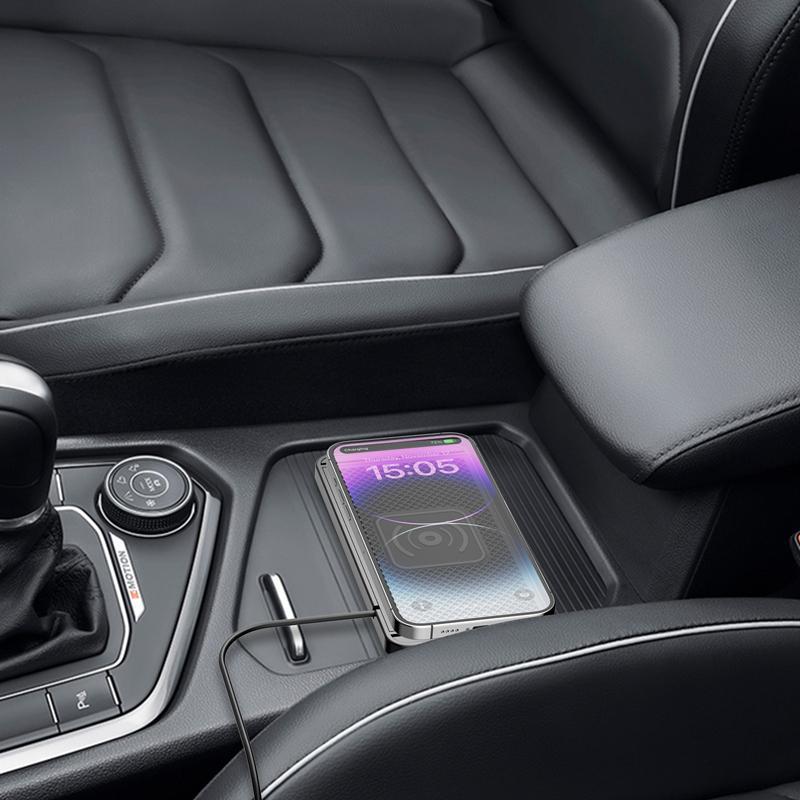 2. QI car wireless charger, designed for the car armrest box, storage drawer and other space design, do not disassemble the car parts modified directly upgrade wireless charging, at the same time you can also according to the size of the car space trimming, so that you better experience the fun of wireless charging