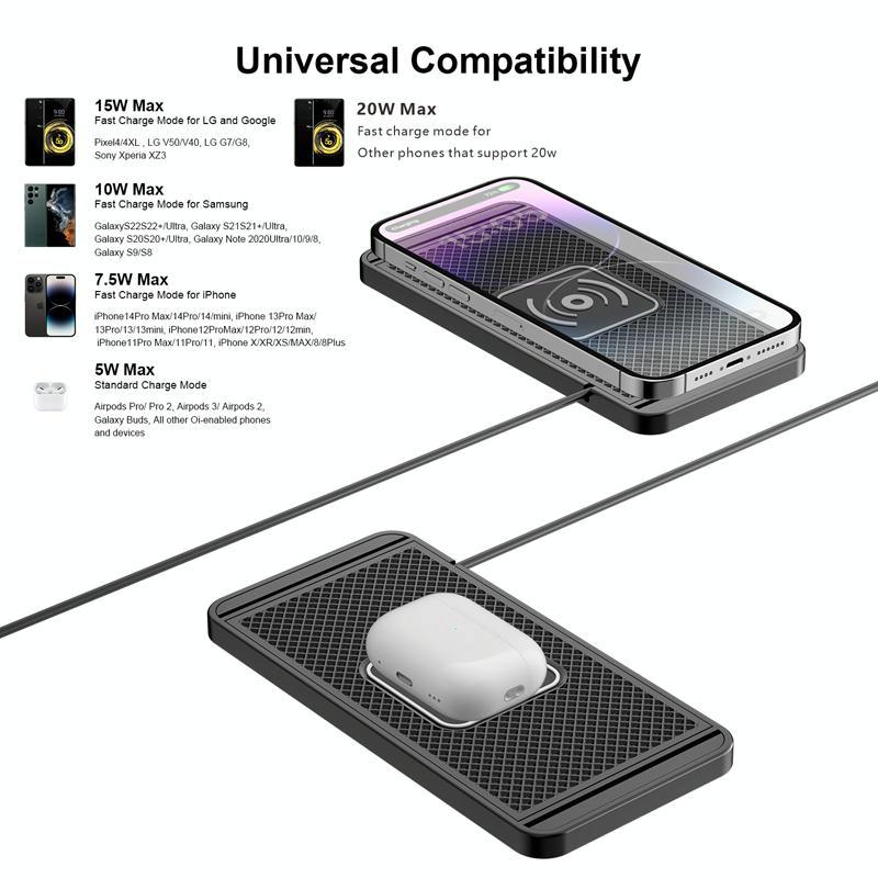 2. QI car wireless charger, designed for the car armrest box, storage drawer and other space design, do not disassemble the car parts modified directly upgrade wireless charging, at the same time you can also according to the size of the car space trimming, so that you better experience the fun of wireless charging