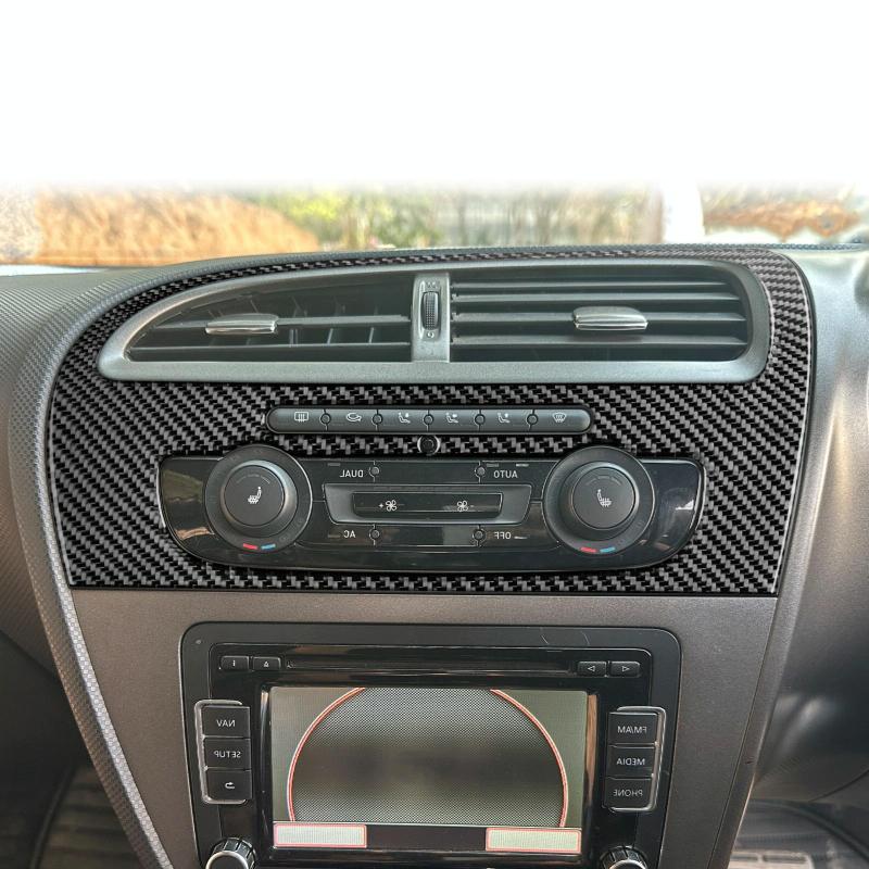 Carbon Fiber Car Center Console Air Conditioner Panel Decorative Sticker for SEAT Leon 2005-2012, Right Driver(Black)