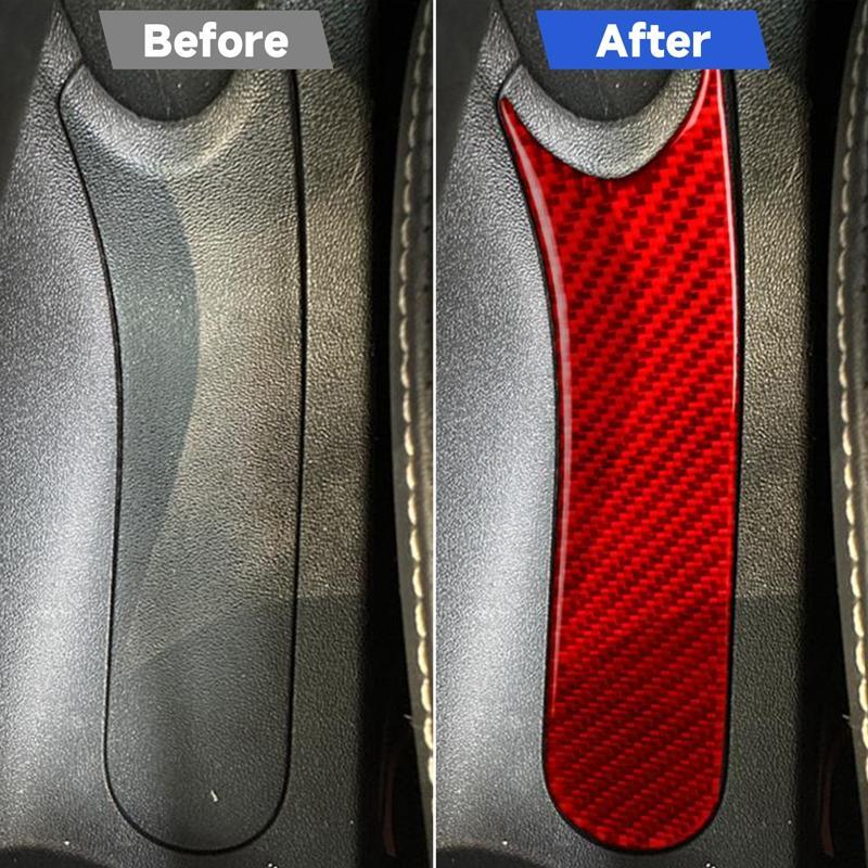 Carbon Fiber Car Handbrake Panel Decorative Sticker for SEAT Leon 2005-2012, Left and Right Driver(Red)