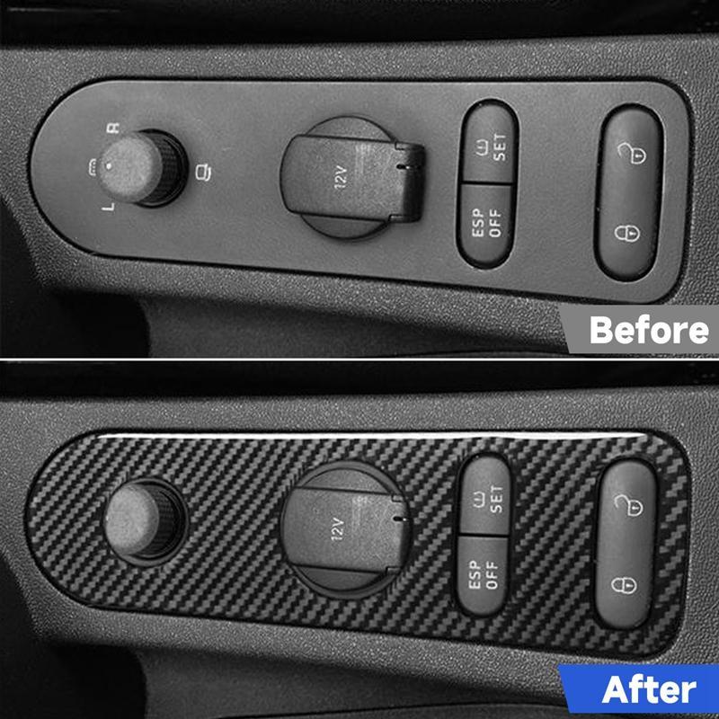 Carbon Fiber Car Rear Mirror Adjustment Panel B Decorative Sticker for SEAT Leon 2005-2012, Left and Right Driver(Black)