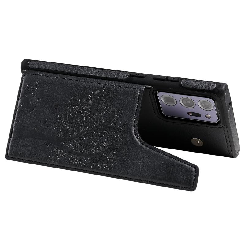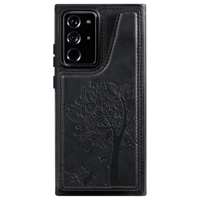 Cat Tree Embossing Pattern Shockproof Protective Case with Card Slots & Photo Frame & Holder For Samsung Galaxy Note20 Ultra(Black)