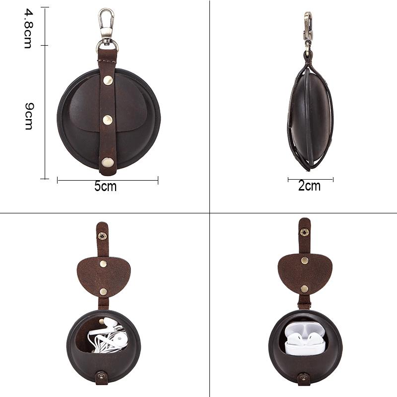 CF1042B For AirPods Pro Crazy Horse Texture Convenient Multifunction Earphone Protective Leather Case with Hook(Coffee)