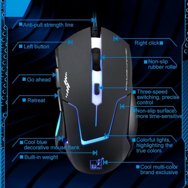 1. 200/1600/2400DPI third gear can adjust the resolution. 2. Blue/Powder/Red/Three Breathing Lights alternately switch.
