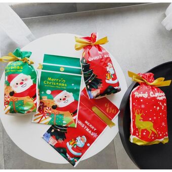 50pcs / Pack Christmas Gift Bag Candy Biscuit Drawstring Bundle Christmas Cookie Bag, Random Pattern Delivery