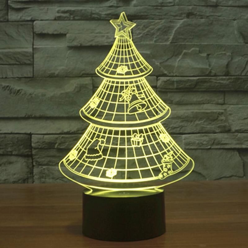Christmas Tree Style 3D Touch Switch Control LED Light , 7 Color Discoloration Creative Visual Stereo Lamp Desk Lamp Night Light