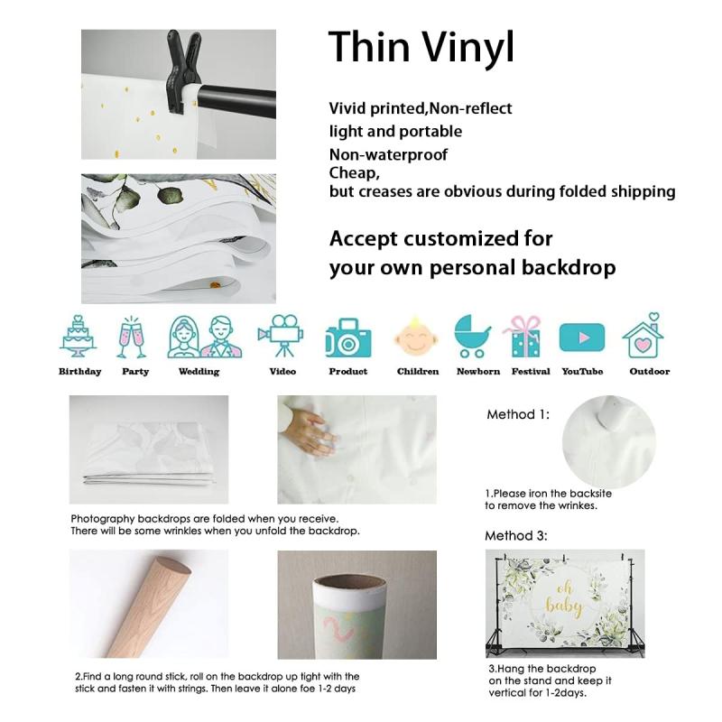1. Material: Thin vinyl professional photography cloth, high-resolution digital printing, eye-catching details and vivid colors