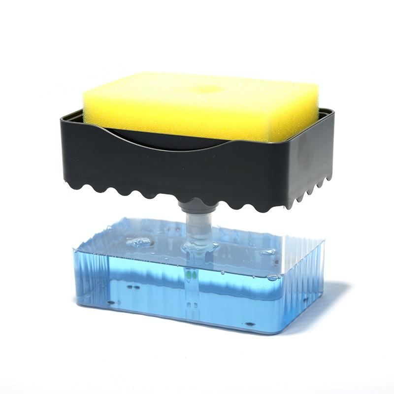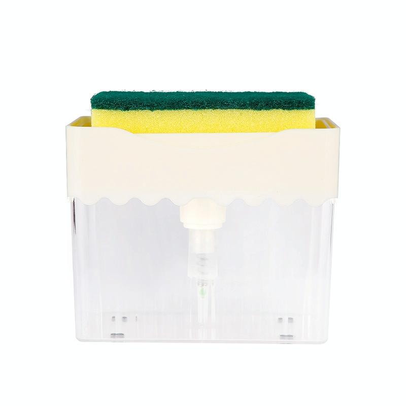 Cleaning Cloth Dishwashing Brush Liquid Box Kitchen Brush Detergent Mixer Press Plastic Soap Box(White)