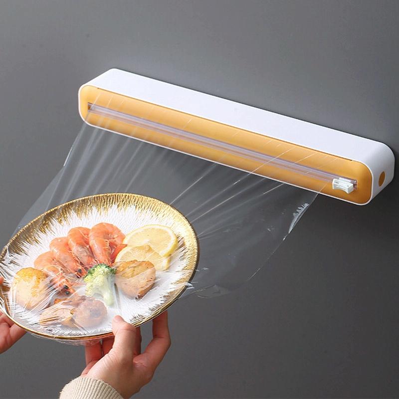 Cling Film Cutter Adjustable Storage Cutting Box, Color: Yellow White Magnetic Sticker