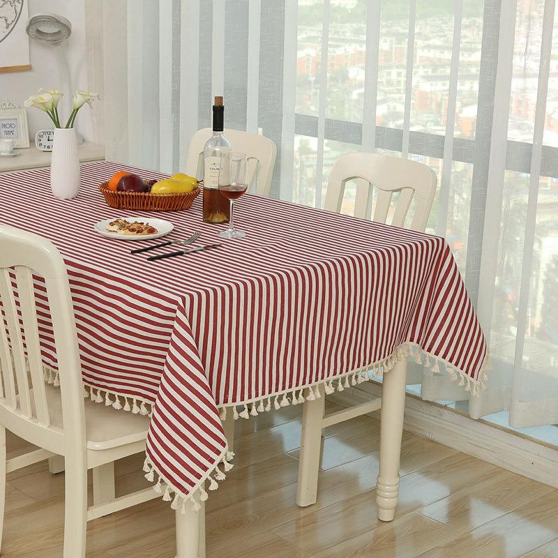 Cloth Cotton Dining Tablecloth Decoration Cloth, Size:140x180cm(Rose Red Stripe)