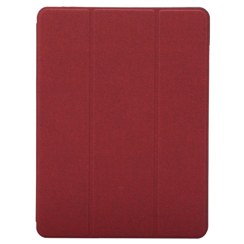 Cloth Texture Pattern Case for iPad 9.7 (2018) & iPad 9.7 inch (2017), with Three-folding Holder & Pen Slots(Red)