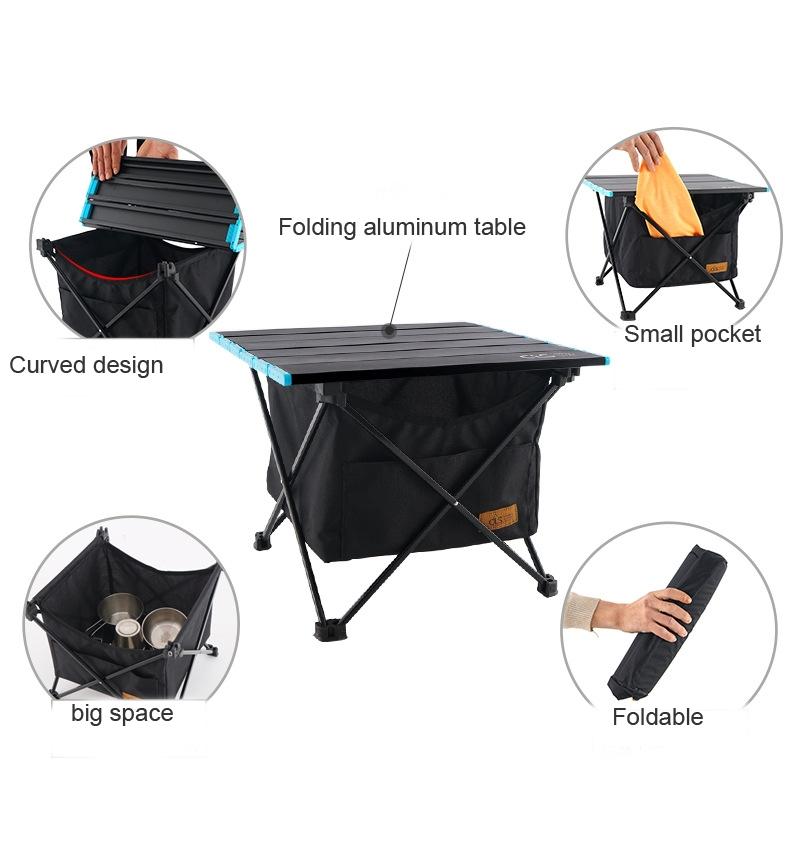 1. Material: Invisible pocket material 600D waterproof Oxford cloth, folding table material aluminum alloy